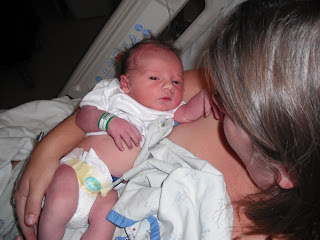 Feeding: Parker is nursing really well. I had soreness for the first two weeks-never any bleeding or cracked nipples. I hardly used any lanolin at all. I've been needing breastpads still. I can tell when I'm getting really full, and when I have a letdown. I have a really fast letdown-so Parker is a quick nurser, but if he's not careful, he may get sprayed in the face. It's also pretty cool that I have decent sized boobs for the first time ever.